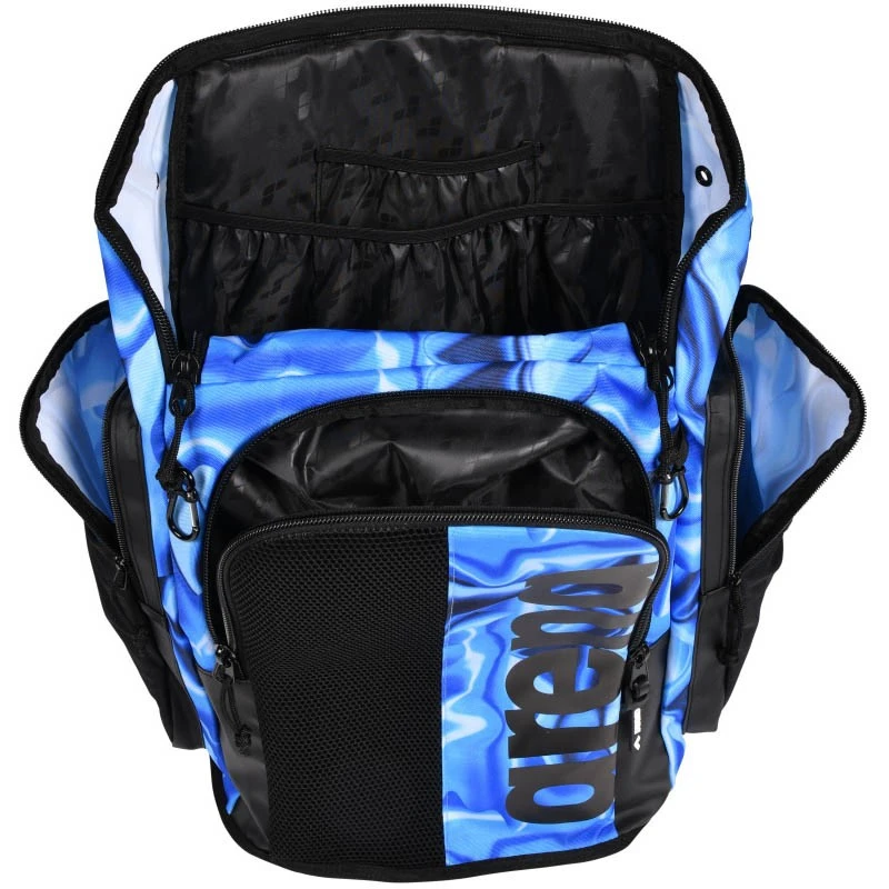 Swimmers love this ultra smart and eye-catching backpack! The spacious, comfortable and super stylish arena Spiky III Allover Backpack 45 is especially designed for swimmers.