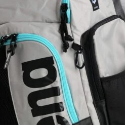 The top loading main compartment, three additional zip pockets, mesh side pockets and a separate swimbag for wet garments ensure excellent storage space for all your training gear.