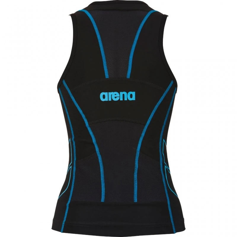 Training or competing, doing double duty is no sweat with triathlon separates. The Powerskin ST tritop is made for your most challenging long-course race or session. Updated in sleek black with contouring turquoise trim, this top is made of high-tech materials and smart details for a perfect fit, ideal compression and long-lasting comfort. Swim faster in this streamlined design and keep the heat under control with mesh inserts for maximum ventilation. Arena reduced chafing with flat seams and a zipper garage plus the handy front zipper speeds up transitions. Easily stow small items in convenient mesh pockets designed for zero drag.